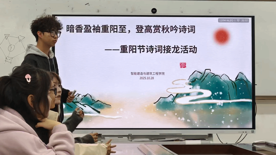 同日,同学们以诗心巧思策划“暗香盈袖重阳至,登高赏秋吟诗词”活动,现场设“填诗词”“对答”“飞花令”三大模块,不见喧嚣竞技,只余诗韵在秋光中流转。“填诗词”与“对答”环节里,“遥知兄弟登高处”的诗句在屏上轻展,应答声便如秋声漫起,“遍插茱萸少一人”的对句里,藏着王维诗中穿越千年的思亲意绪;“秋”“菊”为令的飞花令中,“采菊东篱下”的悠然、“秋水共长天一色”的壮阔在字句间次第铺展,每一句吟哦都似与古人隔空对谈,让重阳的“秋”“菊”“茱萸”等意象,在青春的诵读里愈发鲜活温润。