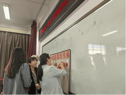 在学院党委书记张春丽的引领下,学院师生共同参与了寄语活动。活动伊始,张春丽首先发表讲话,强调了爱国主义教育的重要性,并号召全体师生将爱国情怀融入教书育人与科研创新的实践中。随后,张春丽与在场师生一同在红色寄语卡上写下对祖国的深情祝福。“愿祖国繁荣昌盛”“立德树人,强国有我”“扎根教育,奉献祖国”等真挚话语,既有教师们为党育人、为国育才的坚定承诺,也饱含学子们立志成才、报效祖国的青春誓言。师生共同以笔墨传递赤子之心,现场气氛庄重而温馨。