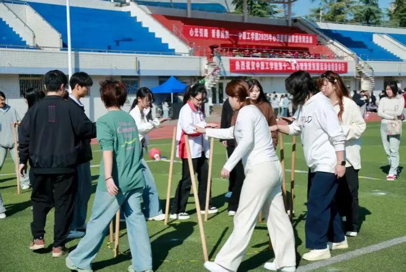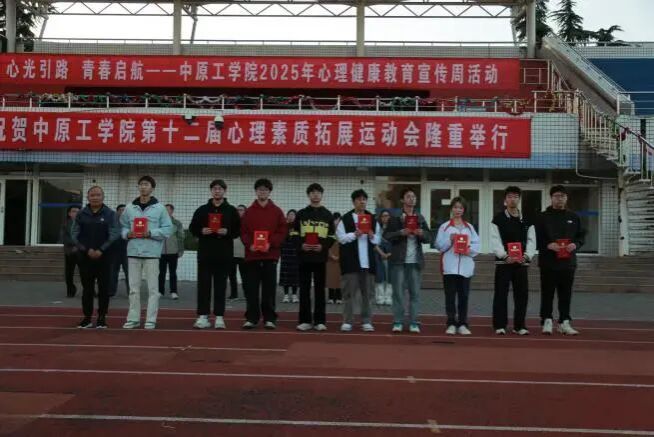2025年11月1日,校中心操场旌旗招展、欢声如潮,中原工学院第十二届心理素质拓展运动会正式拉开帷幕。本次活动以"增强心理韧性 塑造阳光心态"为主题,旨在丰富心理健康教育实践载体,推进"五育融合"心理育人体系建设,我院共有团体操队,方阵队等9个队伍100余人参加10个项目的比赛,学院全体学工队伍老师一同参赛。