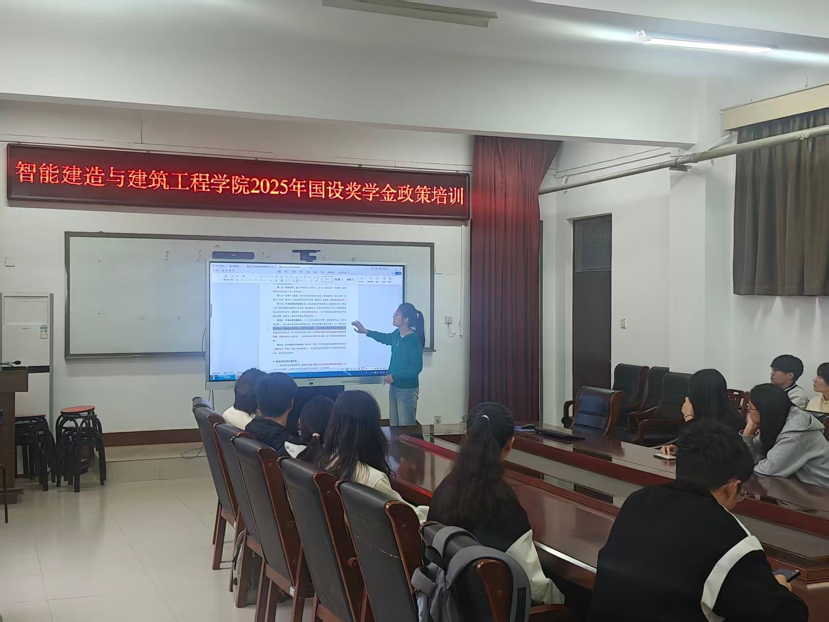 为帮助学生深入了解国家奖学金相关政策,精准把握申请要求与评选流程,切实做好2025年度国设奖学金申请工作,9月16日,智能建造与建筑工程学院面向全体申请国设奖学金的学生开展政策专题培训。学院学工办主任卢亚琼主讲,相关申请学生全程参与。