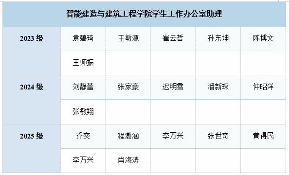 智能建造与建筑工程学院2024-2025学年学生工作办公室助理名单