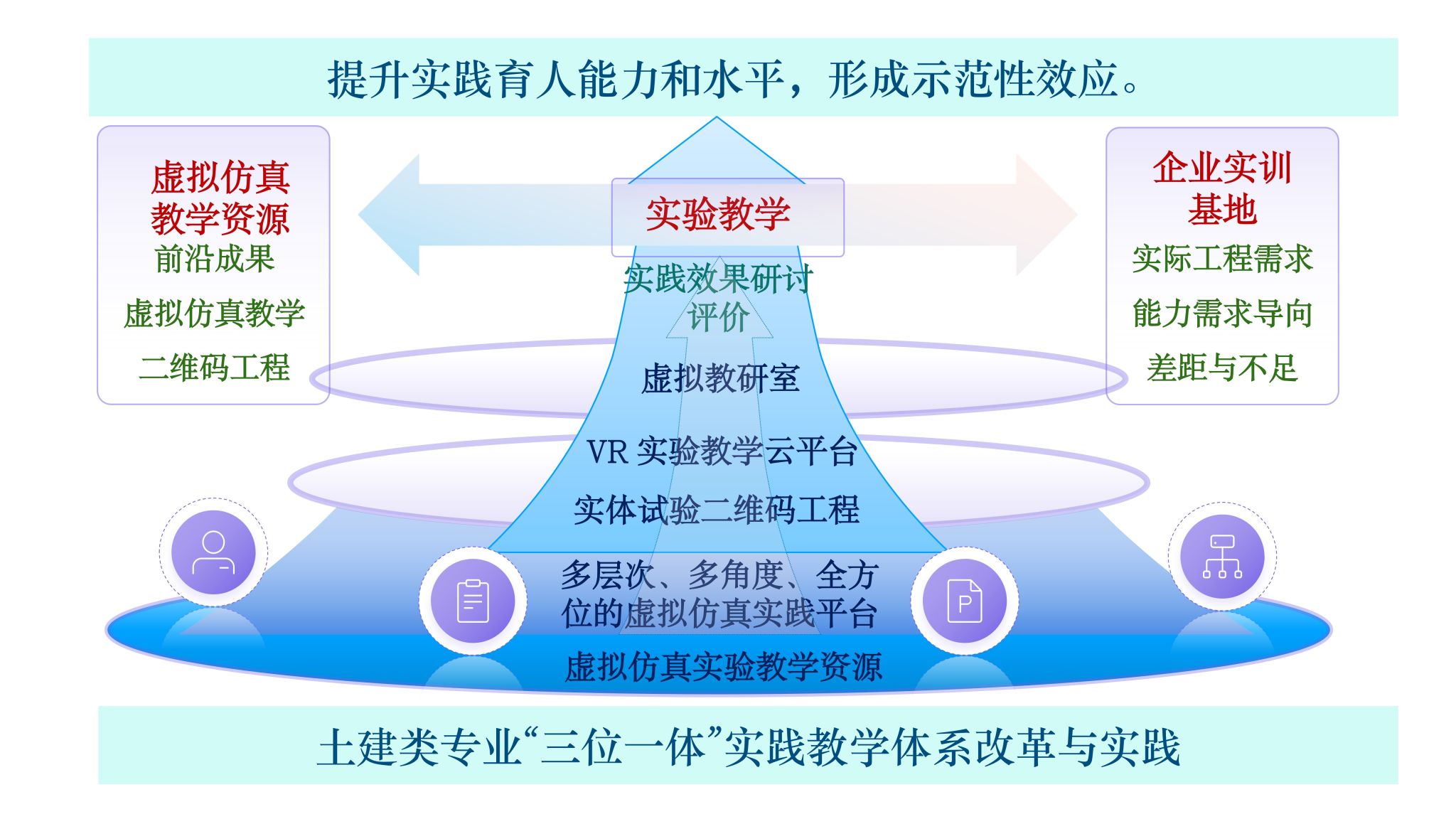 为适应土木行业转型发展需求,积极响应国家推动产教融合、以数智赋能教育改革的战略方向,通过凝练特色虚拟仿真实验教学资源,优化实体实验与企业实习基地的功能与作用,构建了土建类专业“三位一体”实践教学体系。将虚拟仿真实验教学资源、实体实验“二维码工程”纳入“虚拟教研室”信息资源,借助数智化技术实时追踪教学数据与行业动态,推动校企合作从简单的基地共建到共同制定培养标准、共同开发教学资源、共同评价教学效果的协同模式。通过虚实结合、工学交替的教学场景,增强了学生的工程实践能力、创新思维与职业素养,为构建新时代高素质工程技术人才培养提供了探索路径。